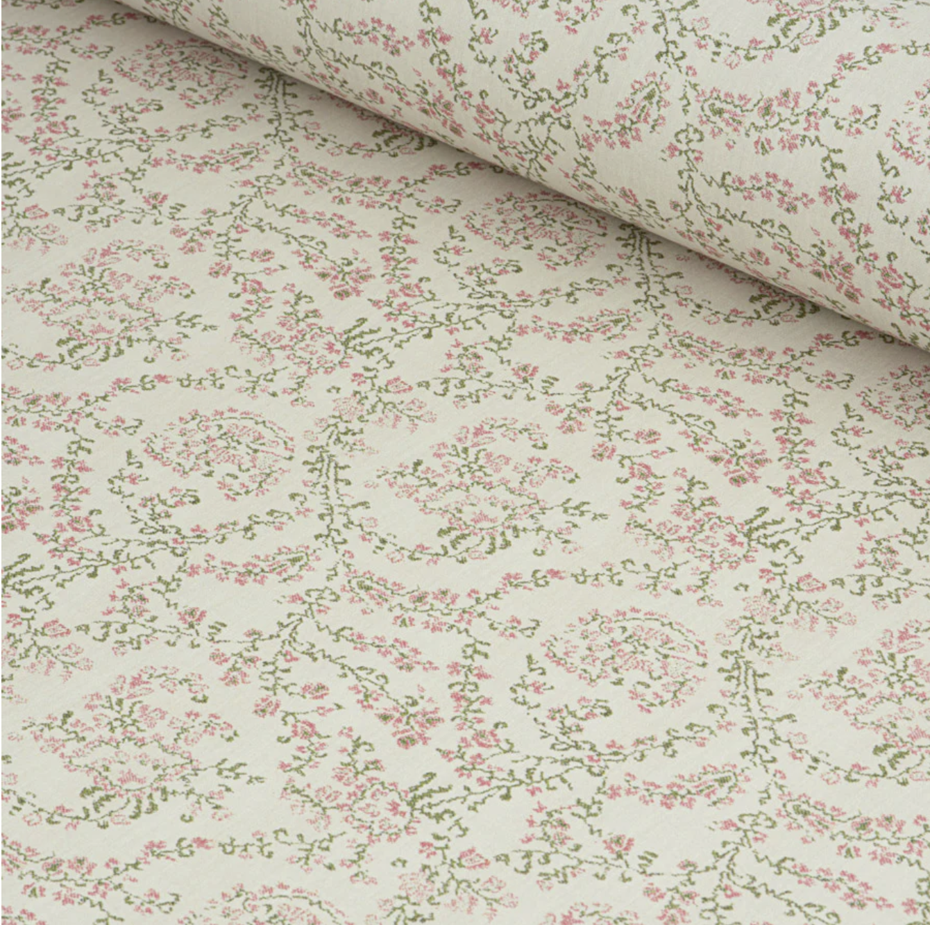 The Jaujac Virelle wallpaper brings timeless elegance to both contemporary and traditional interiors with its delicate, small-scale pattern, inspired by the intricate embroidery of a beautiful Victorian shawl. The paper feels both historical and refreshingly modern. Available in four colourways, the pattern adds depth and character to a space without overwhelming. Width: 70cm / 27.5" Repeat: 13.2cm / 5.2" Length: 10m / 10.9yd rolls Type: Uncoated Non-Woven Wallpaper