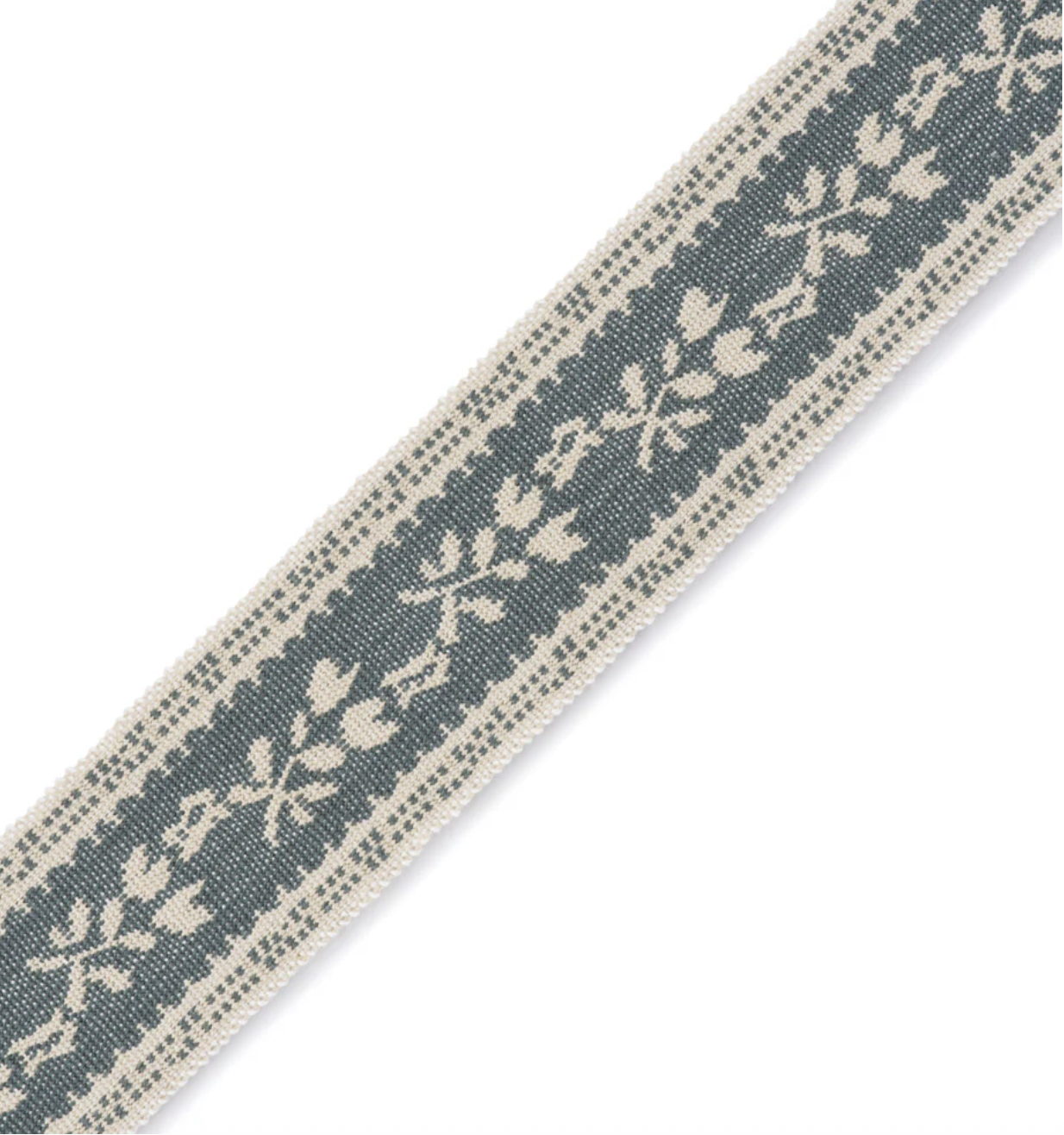 A pure cotton traditionally woven jacquard braid, designed to coordinate with our Somborne linens and created in collaboration with the oldest passementerie mill in Britain. Woven Width: 4.2cm / 1.65" Repeat: 7cm / 2.75" Content: 100% cotton