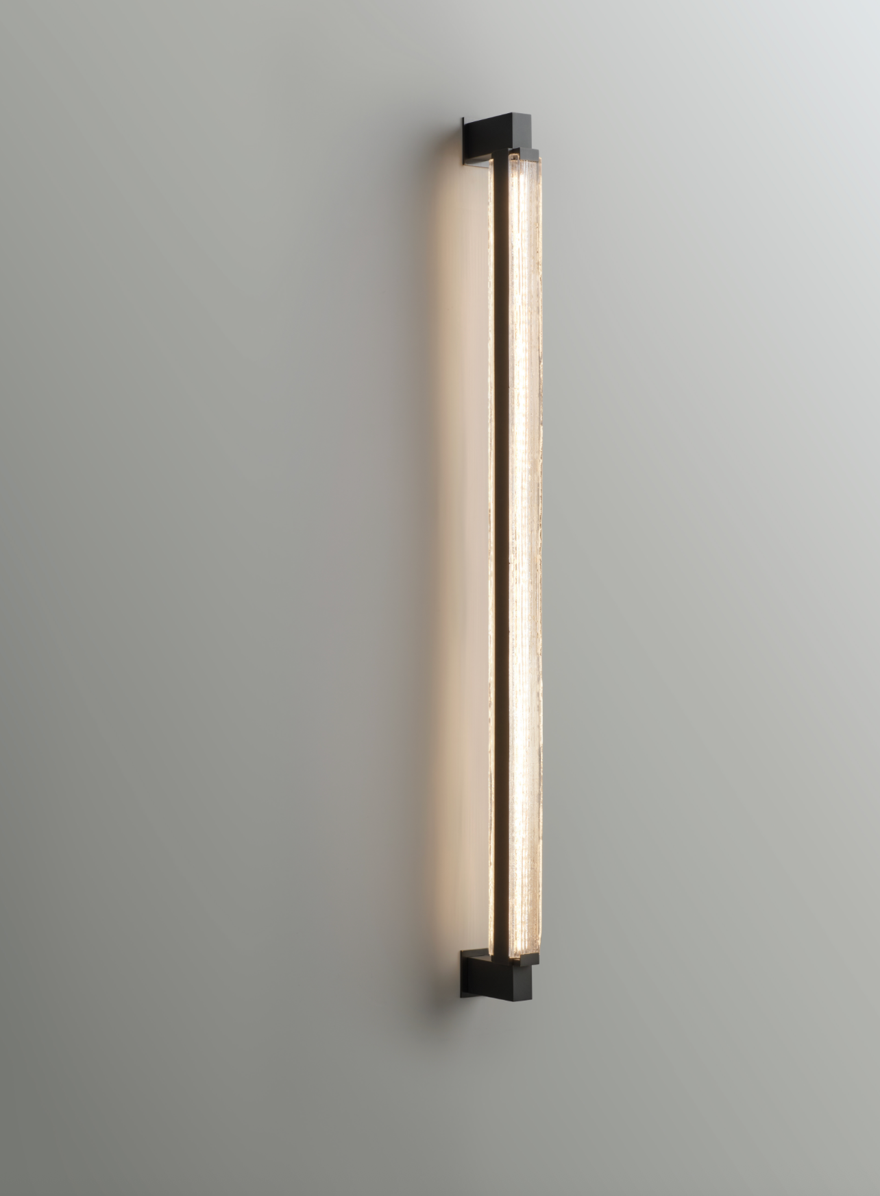 The Brooklyn Sconces transform walls and mirrors into luminous architectural elements. Their slim brass frame and fused cast-glass surface create a subtle yet brilliant glow — elegant when used singly, dramatic when arranged in multiples. Designed by Mark Figueredo for Boyd. DIMENSIONS Brooklyn Sconce I Width: 1.5" (38 mm) Height: 21.62" (559 mm) Projection: 3.5" (90mm) Net Weight: 8.5 lbs (43.9 kg) DIMENSIONS Brooklyn Sconce II Width: 1.5" (38 mm) Height: 36" (914 mm) Projection: 3.5" (171 mm) ILLUMINATION 10910 Lightsource: LED Performance: 13 watts ~1400fixture lumens. Universal 120v-277v Color Temperature: 3000 K 90+ CRI ILLUMINATION 10911 Lightsource: LED Performance: 19 watts ~2100 fixture lumens. Universal 120v-277v Color Temperature: 3000 K 90+ CRI 2700K color temperature is available. The lamps standard in this fixture can be dimmed with 0-10v, ELV or MLV style dimmers. Driver must be mounted remotely. AVAILABLE FINISHES: Antiqued Boyd Brass Blackened Brass Earthen Brass Satin Brass Satin Nickel* * Specialty Glass shade: Fused & Cast Clear