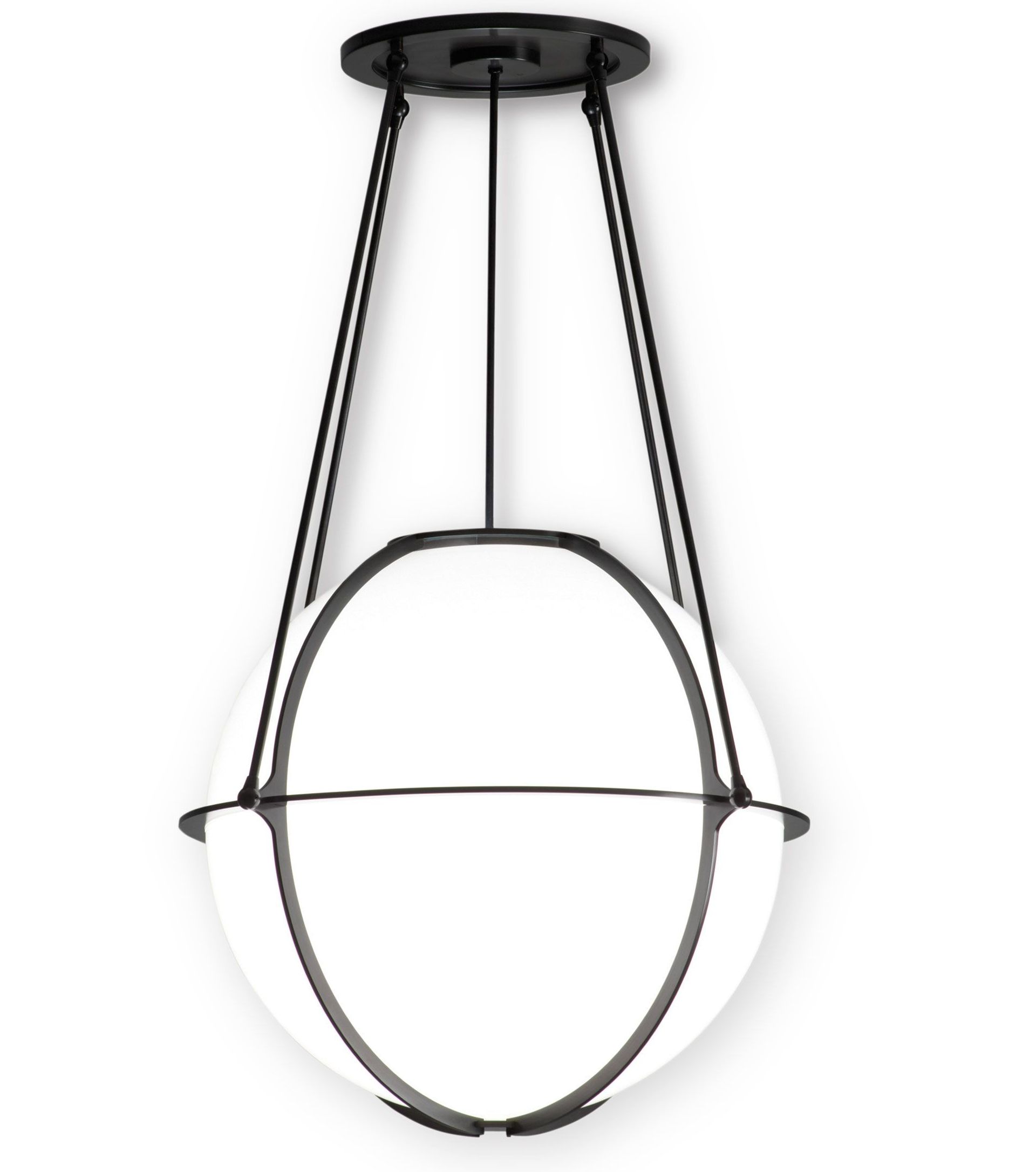 Winner of the ADEX award by Design Journal and a long-time best-seller, Globe features a round, gloss white, acrylic diffuser in multiple diameters and industrial construction with interesting details at the joints.