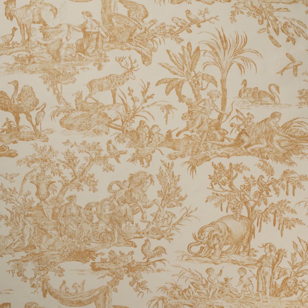 An intricate and highly detailed classic Toile de Jouy, adapted from an original design by Jean Baptiste Huet of 1794. Printed on linen/cotton with a chintz finish.
